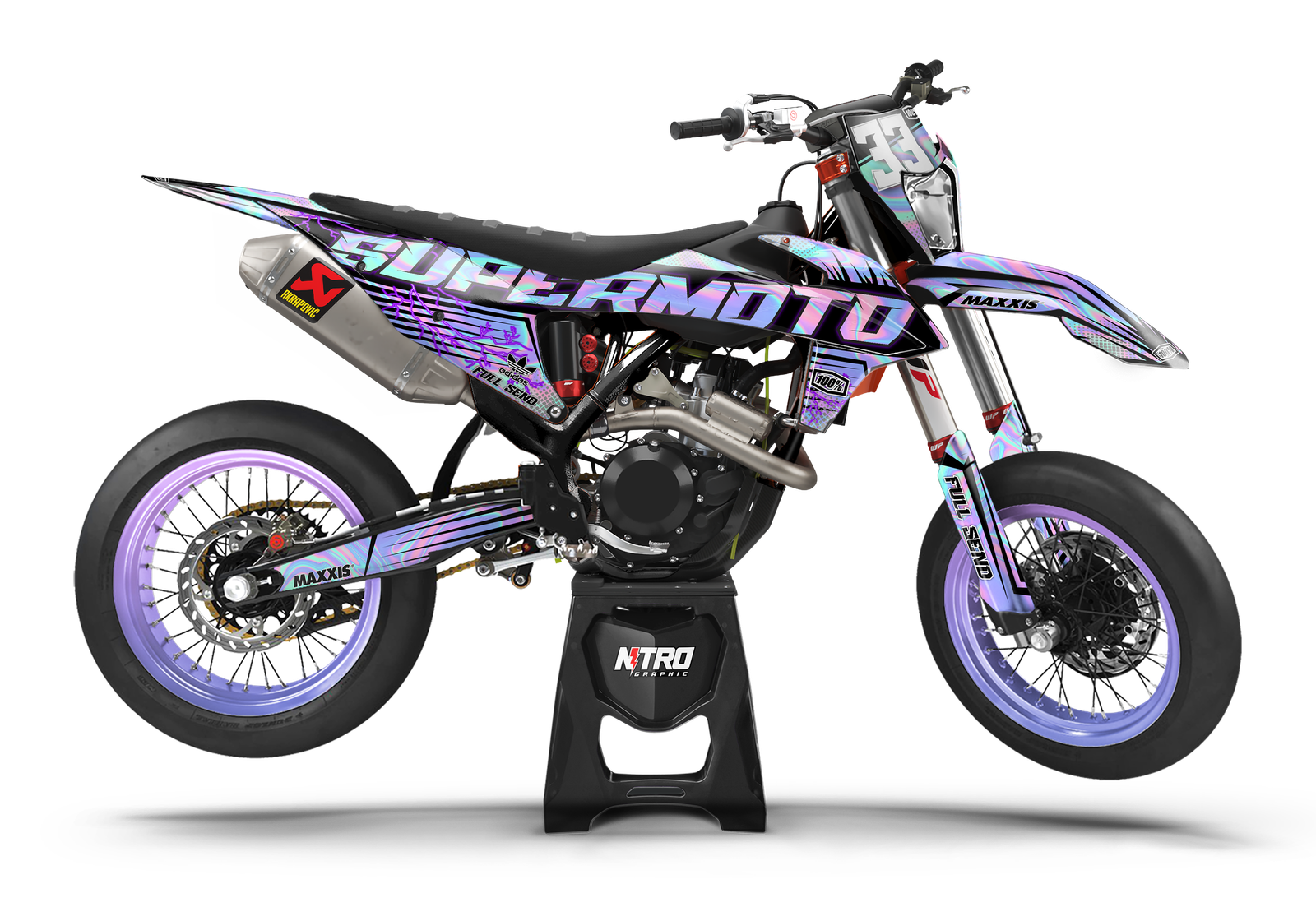 Full Graphics Kits include pre-designed template graphics for – Tank Shrouds / Fuel Tank, Side Number Plates, Airbox, Rear Fender, Front Fender, Front Number Plate Fork Guards, and Swingarms (Contents may vary dependant on Type / Model selected).