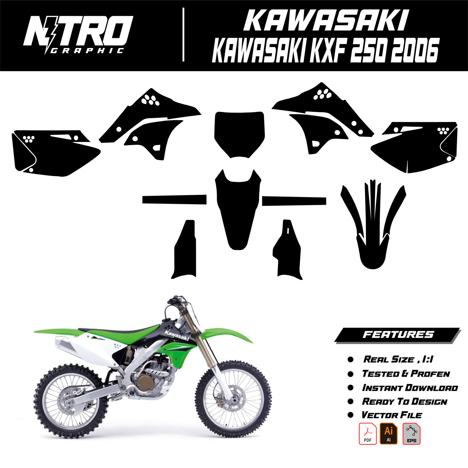 Our YAMAHA YZF 250-450 2006 2007 2008 2009 Templates are manufactured to be easily placed on your vehicle and make it 100% unique. Our Vector Template is available in digital format. It is designed to be simply used with your graphic design software (Illustrator, Photoshop, Corel Draw, etc.).