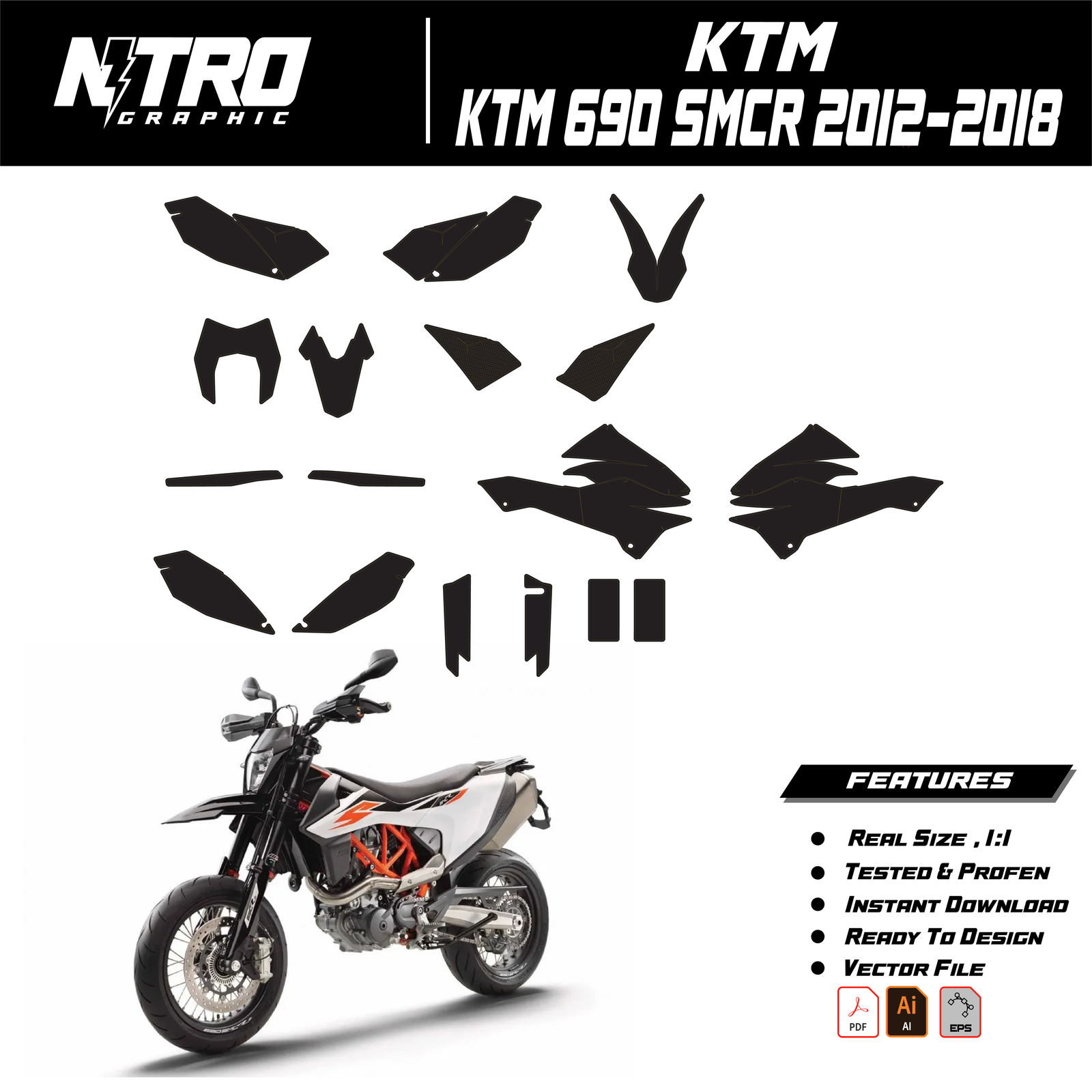 Our KTM 690 SMCR 2012-2018 Templates are manufactured to be easily placed on your vehicle and make it 100% unique. Our Vector Template is available in digital format. It is designed to be simply used with your graphic design software (Illustrator, Photoshop, Corel Draw, etc.).