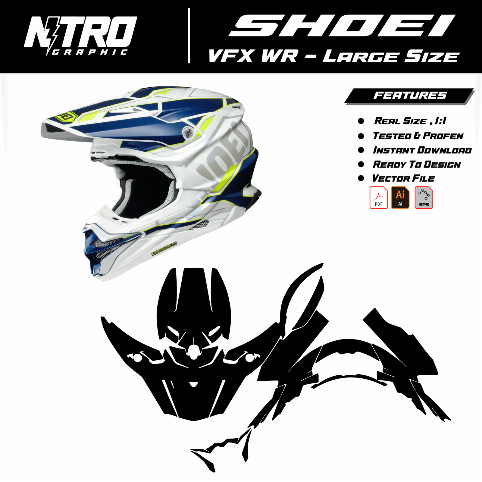 Looking for a versatile and high-quality template to customize your Shoei VFX-WR helmet design? Our vectorized Shoei VFX-WR helmet template is specifically crafted to streamline customization while ensuring precise, professional results. Designed for graphic designers, motorsport enthusiasts, and creative minds, this ready-to-edit format puts the power of personalized design at your fingertips.