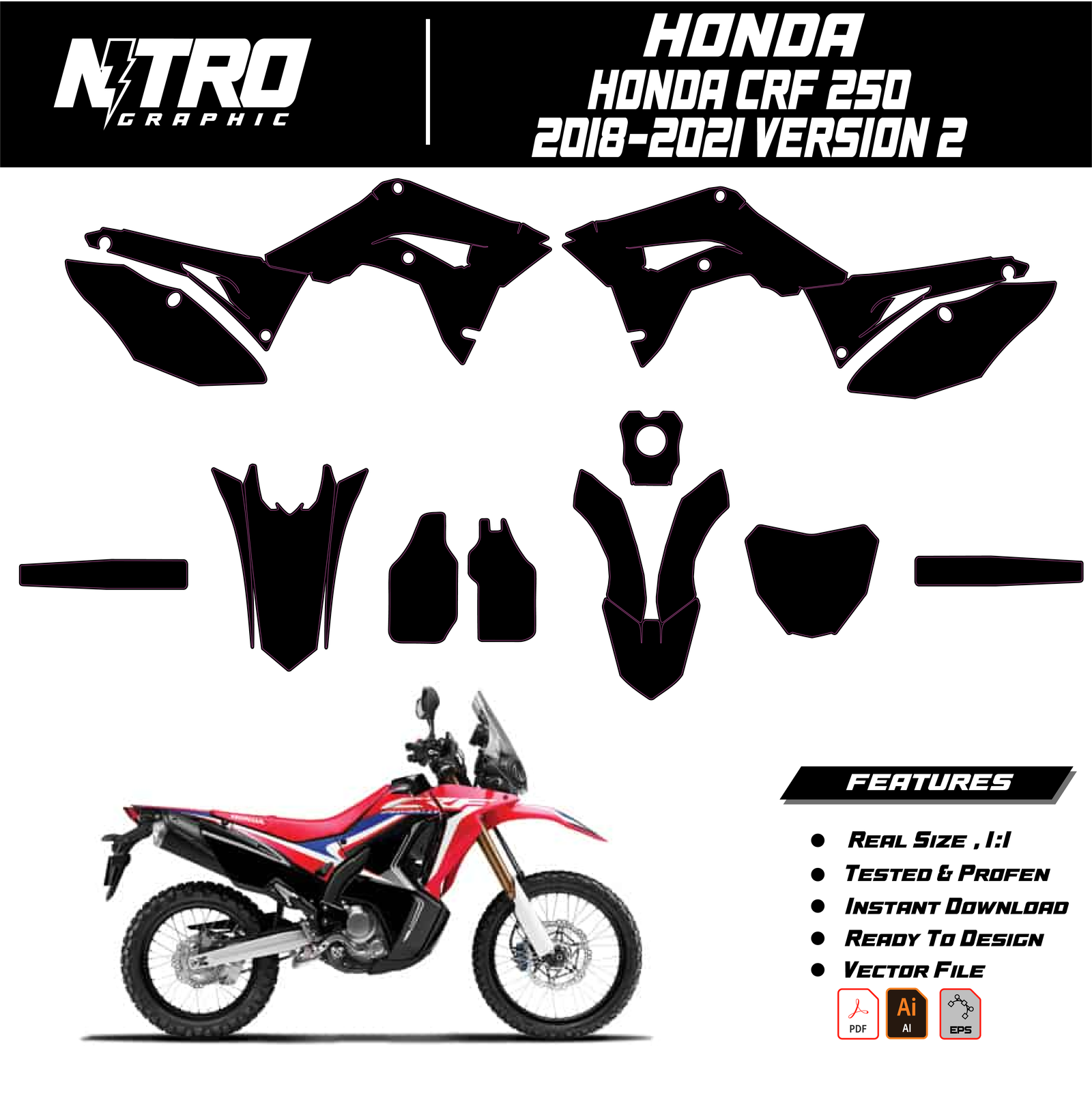 Our Honda CRF 250 2018 2019 2020 2021 VERSION 2 Templates are manufactured to be easily placed on your vehicle and make it 100% unique. Our Vector Template is available in digital format. It is designed to be simply used with your graphic design software (Illustrator, Photoshop, Corel Draw, etc.).