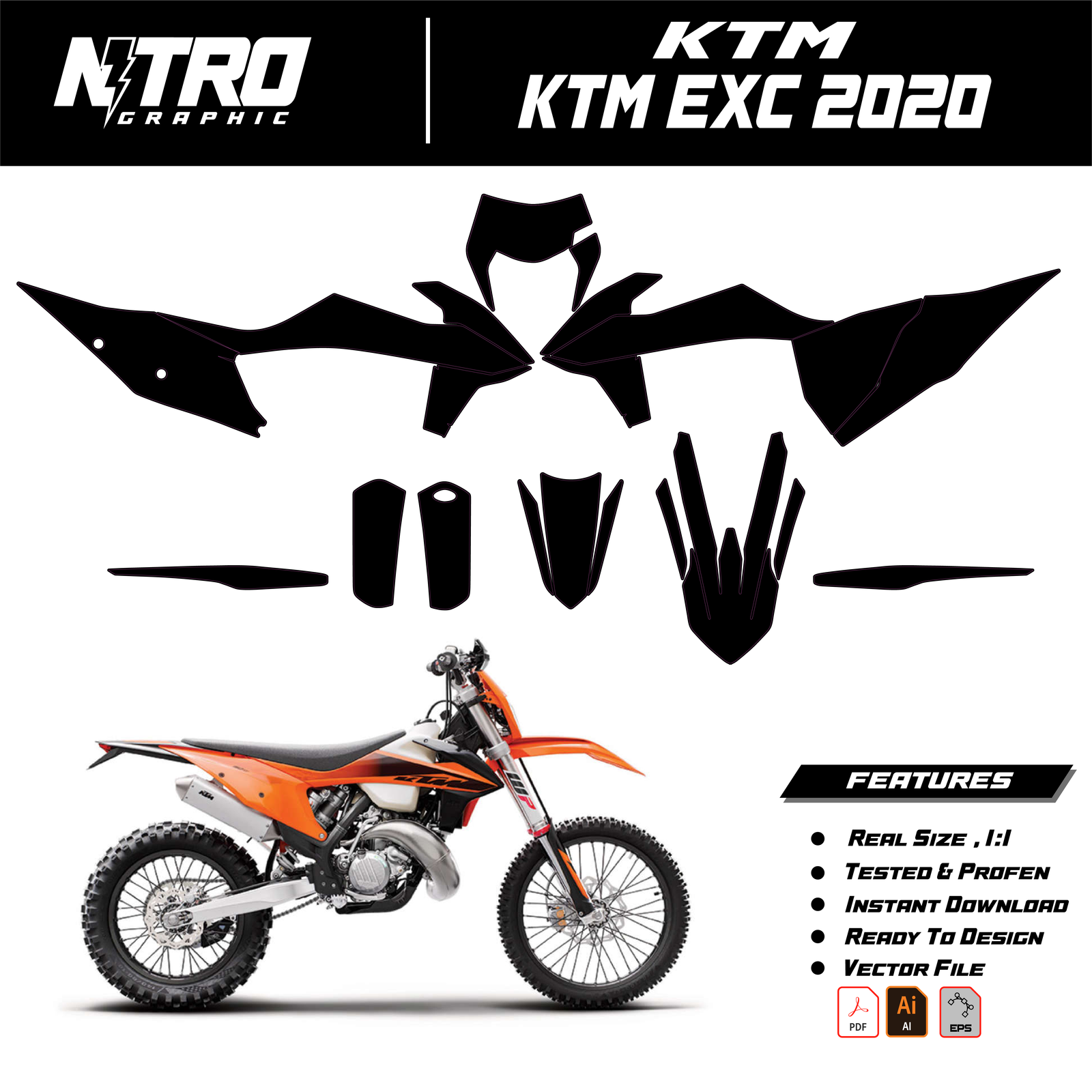 Our KTM EXC 2020 Templates are manufactured to be easily placed on your vehicle and make it 100% unique. Our Vector Template is available in digital format. It is designed to be simply used with your graphic design software (Illustrator, Photoshop, Corel Draw, etc.).
