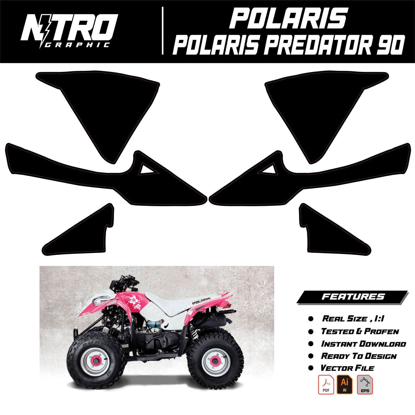 Our POLARIS PREDATOR 90 QUADS ATV Templates are manufactured to be easily placed on your vehicle and make it 100% unique. Our Vector Template is available in digital format. It is designed to be simply used with your graphic design software (Illustrator, Photoshop, Corel Draw, etc.).