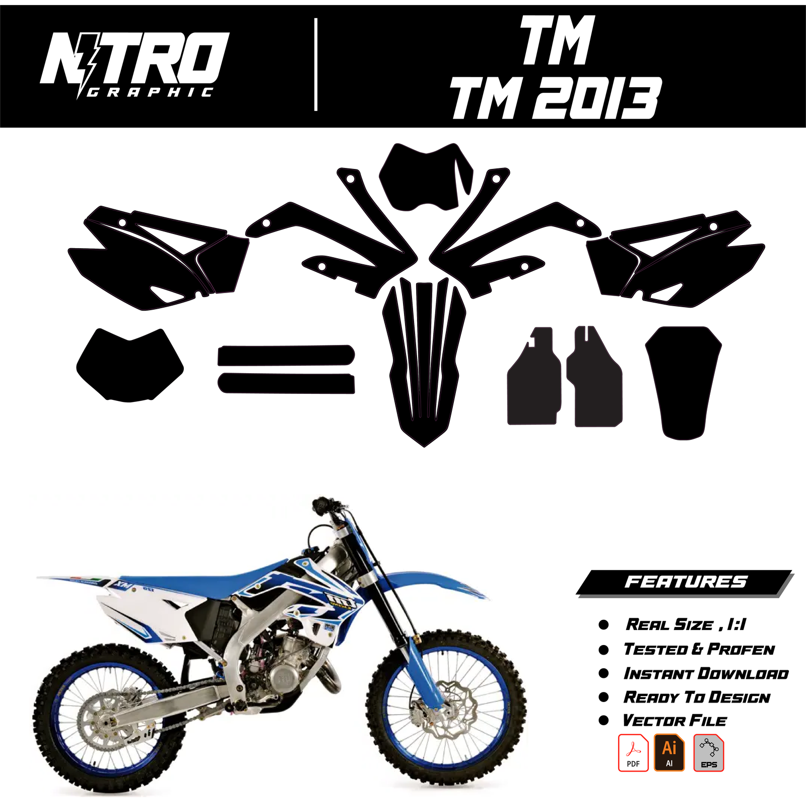 Our TM 2013 Templates are manufactured to be easily placed on your vehicle and make it 100% unique. Our Vector Template is available in digital format. It is designed to be simply used with your graphic design software (Illustrator, Photoshop, Corel Draw, etc.).
